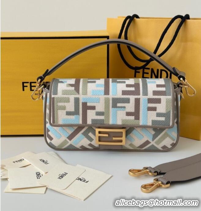 Top Quality Fendi Baguette Medium Bag in Canvas with FF embroidery 0159M Green/Blue/Multicolor 2025