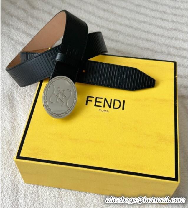 Top Quality Fendi Men's Striped Calfskin Belt 3.4cm 0315 Black/Silver 2025