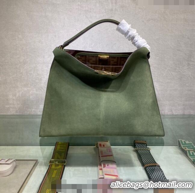 New Design Fendi Peekaboo Large Tote Bag in Suede with Strap F8085 Green 2024