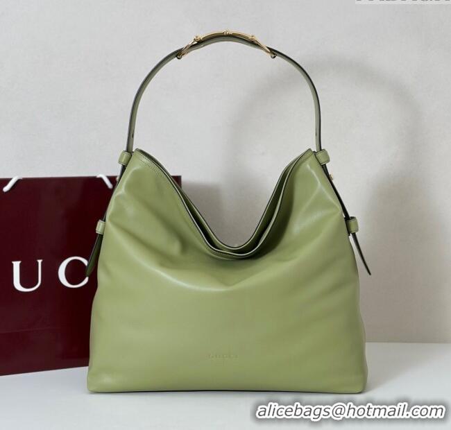 Top Grade Gucci 73 Leather Small Bucket bag with ‎Maxi Half Horsebit 833665 Green 2025