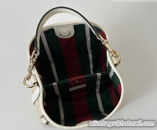 Luxury Discount Gucci GG Canvas Emblem Small Bucket Bag 815118 White 2026