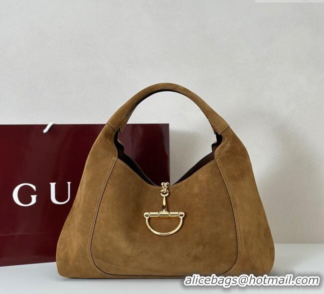 Top Quality Gucci Softbit Suede Maxi Shoulder Bag with Oversized Half Horsebit 837466 Brown 2025