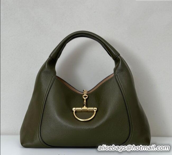 Luxury Cheap Gucci Softbit Leather Maxi Shoulder Bag with Oversized Half Horsebit 837466 Khaki 2025
