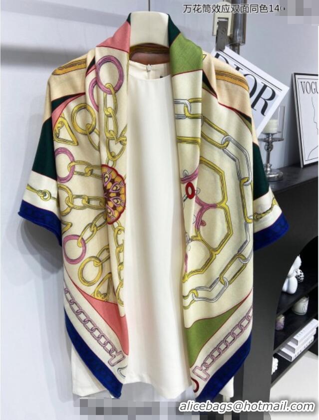 Top Quality Hermes Effet Kaleidoscope Cashmere Silk Shawl 140cm H1090 Blue 2024