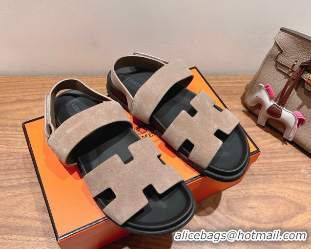 Top Quality Hermes Genius Strap Sandals in Suede Grey H082011 0820177