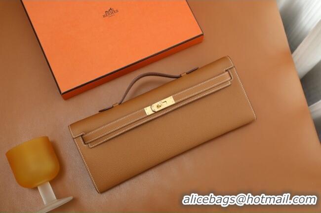 Top Quality Hermes Kelly Cut Clutch Bag in Original Epsom Leather H2101 Brown/Gold (Full Handmade)