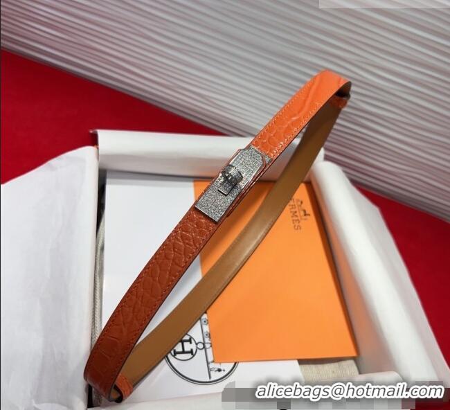 Discount Hermes Kelly Duo Belt 1.8cm in Crocodile Embossed Calfskin with Silver Strass Paved Buckle H2011025 Orange 2025