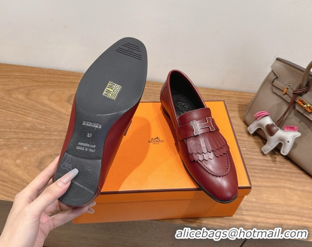 Top Quality Hermes Royal Loafers in Calfskin Leather with Fringe Red 2025 H082006 0820057