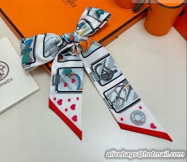 Top Quality Hermes Silk Twilly Bandeau Scarf 5x86cm HS010603 White 2026