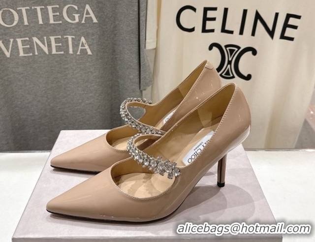 Shop Duplicate Jimmy Choo Bing Pumps 8.5cm with Strass Strap in Patent Calfskin Leather 0207007 Nude Pink 2026