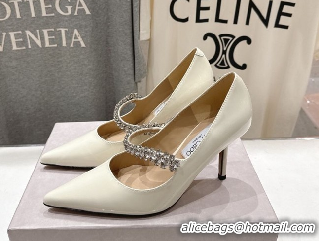 Top Quality Jimmy Choo Bing Pumps 8.5cm with Strass Strap in Patent Calfskin Leather 0207007 White 2026