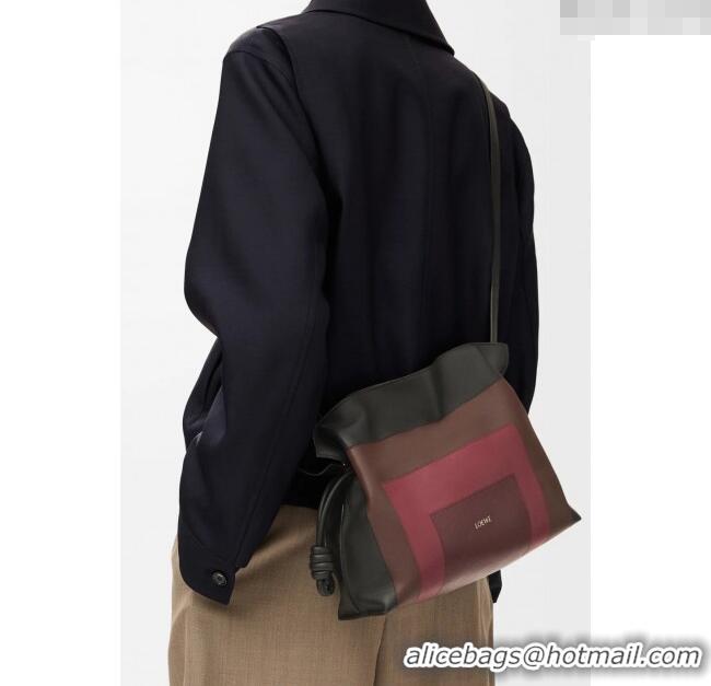 Top Quality Loewe x Albers Medium Flamenco clutch in nappa calfskin 262587 Black/Burgundy 2025