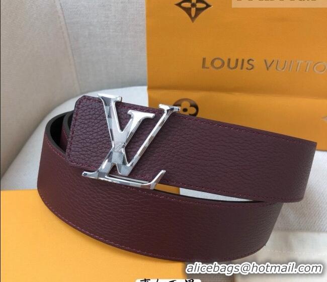 Best Quality Louis Vuitton Grained Calfskin Belt 4cm 1127 Dark Burgundy 2024