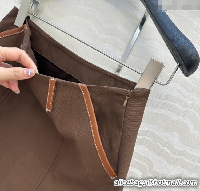 Top Quality Miu Miu Canvas and Lambskin Skirt 0814 Brown 2025