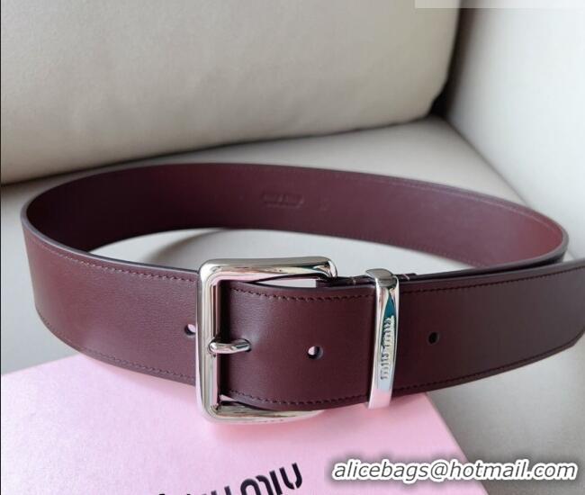 Top Quality Miu Miu Leather Wide Belt 5cm 0113 Burgundy/Silver 2024