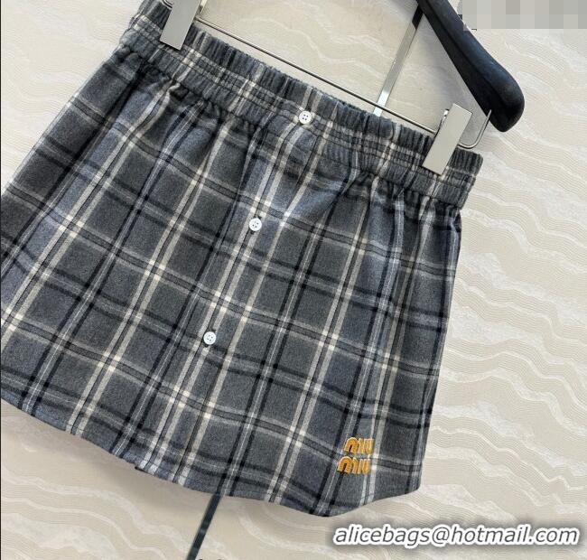 Original Cheap Miu Miu Plaid Mini Skirt MM111429 Grey 2025