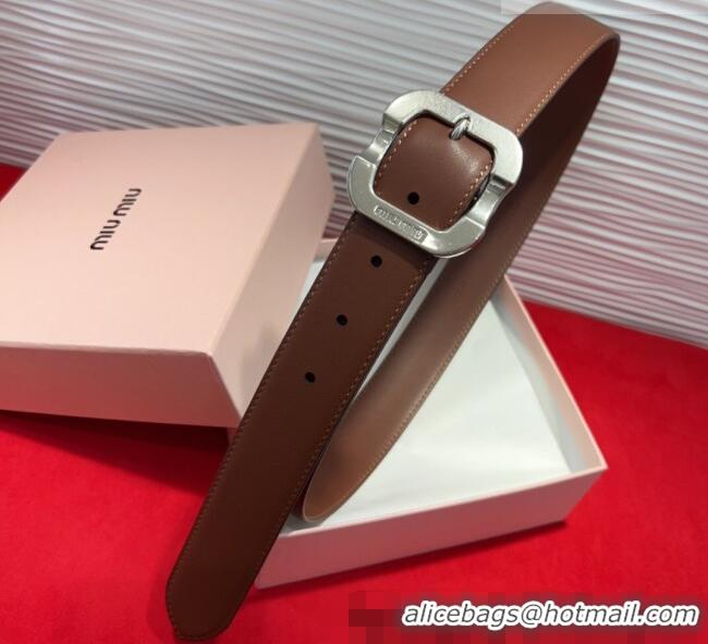 Top Quality Miu Miu Supple Calfskin Belt 3.4cm with Silver-Tone Square Buckle 2012025 Dark Brown 2025