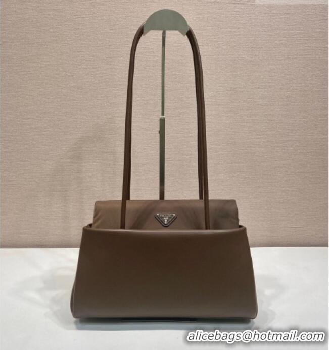 > Prada Handbags > Prada 2026 Bags > Cheap Discount Prada Passage medium leather bag with Re-Nylon flap 1BA495 Coffee Brown 2026