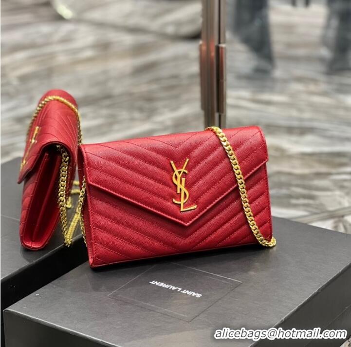 Top Quality SAINT LAUREN CASSANDRE MATELASSE CHAIN WALLET IN GRAIN DE POUDRE EMBOSSED LEATHER 377828 RED