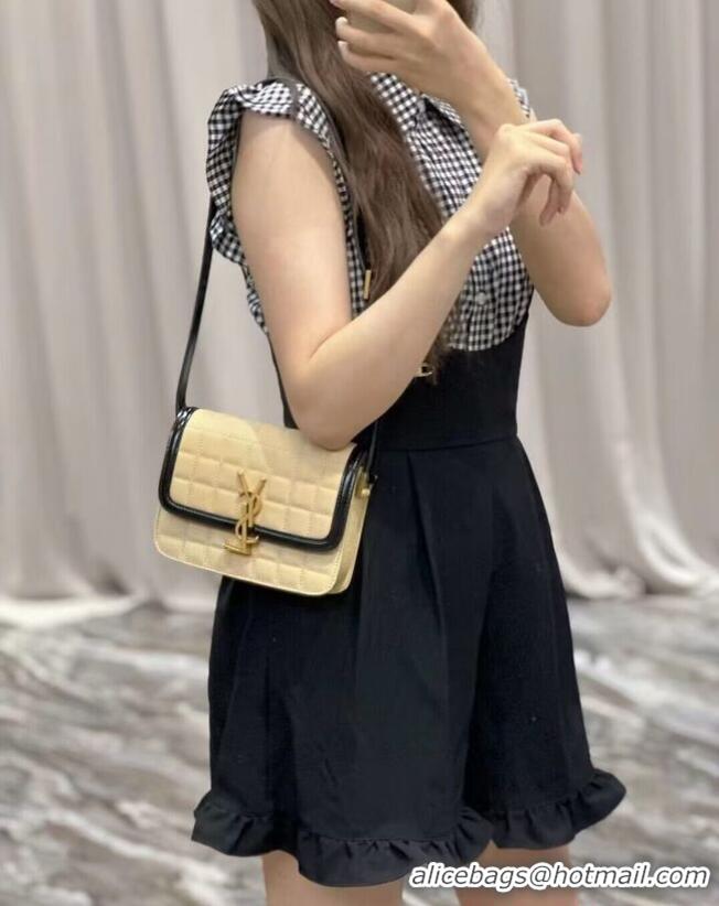 Top Quality SAINT LAUREN SOLFERINO SMALL SATCHEL IN QUILTED NUBUCK SUEDE 739139 OFF WHITE AND BLACK