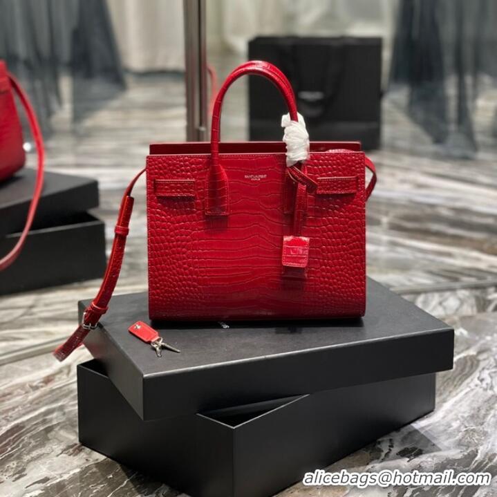 Top Quality SAINT LAURENT Crocodile-Embossed Leather Organ Bag 421863 Red