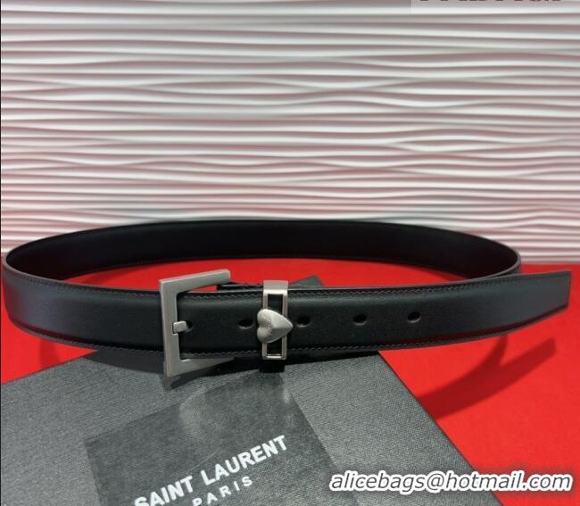 Top Quality Saint Laurent Calfskin Leather Belt 3cm with Heart Charm YSL091201 Black/Silver 2025