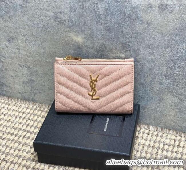 Top Grade Saint Laurent Grained Leather Short Wallet 575974 Pink 2026