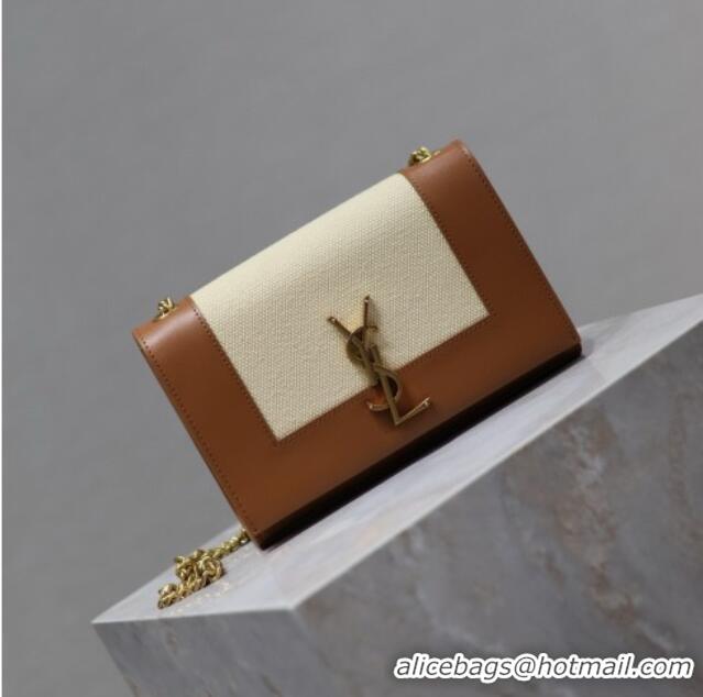 Top Quality Saint Laurent Kate Small Chain Bag in Cotton Linen and Leather 469390 Brown 2025