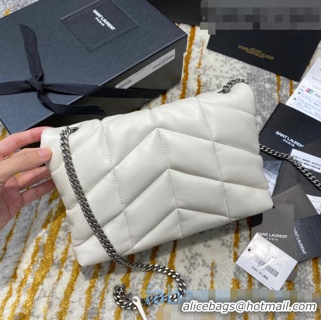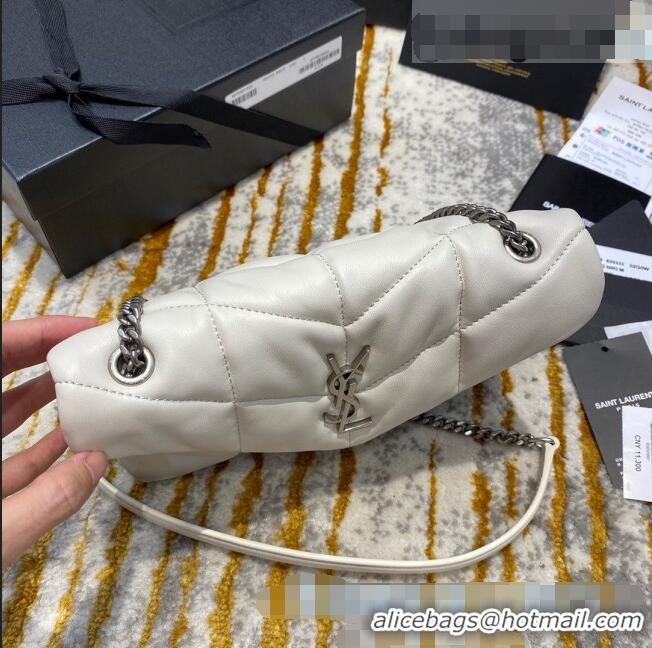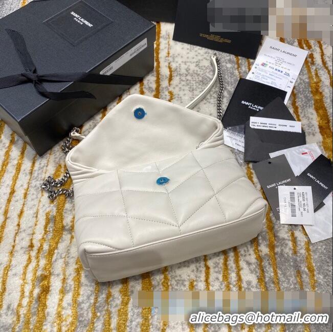 Top Quality Saint Laurent Loulou Puffer Mini Bag in Quilted Lambskin 620333 White/Silver 2020