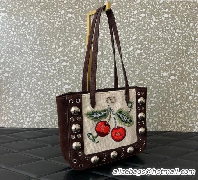 Top Quality Valentino Garavani Nellcote Mini Cherryfic Embroidered Shopping Bag 0078 Brown 2025