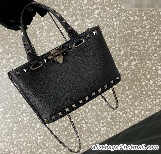 Top Quality Valentino Rockstud Mini Shopping Bag In Grainy Calfskin Leather 0366S Black/Silver 2025