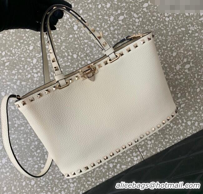 Super Quality Valentino Rockstud Shopping Bag In Grainy Calfskin Leather 0377M White 2025