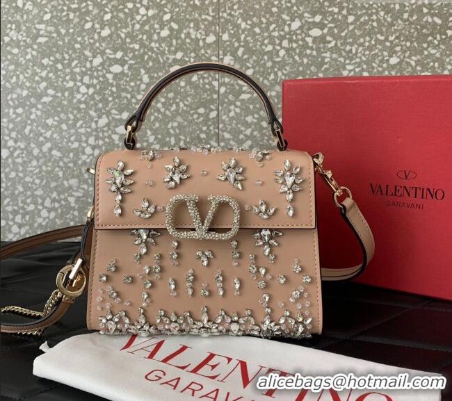 Top Quality Valentino VSLING Mini Embroidered Bag with set-in strass appliques 0063 Light Pink 2025