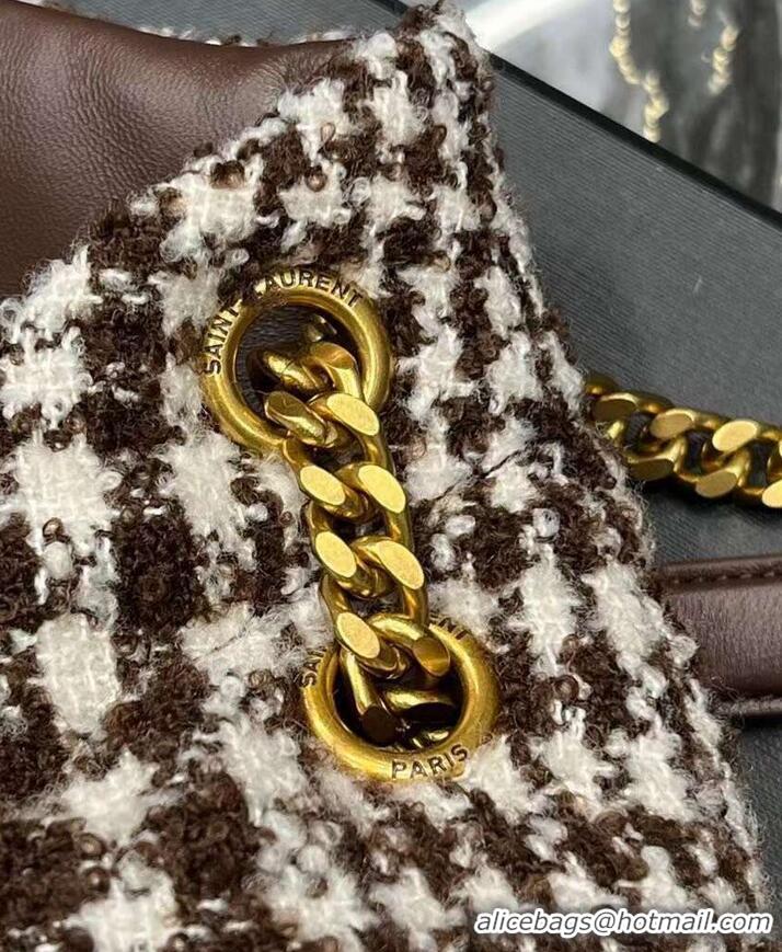 Top Quality Yves Saint Laurent PUFFER BAG IN CHECKED TWEED AND LAMBSKIN 172682 BEIGE