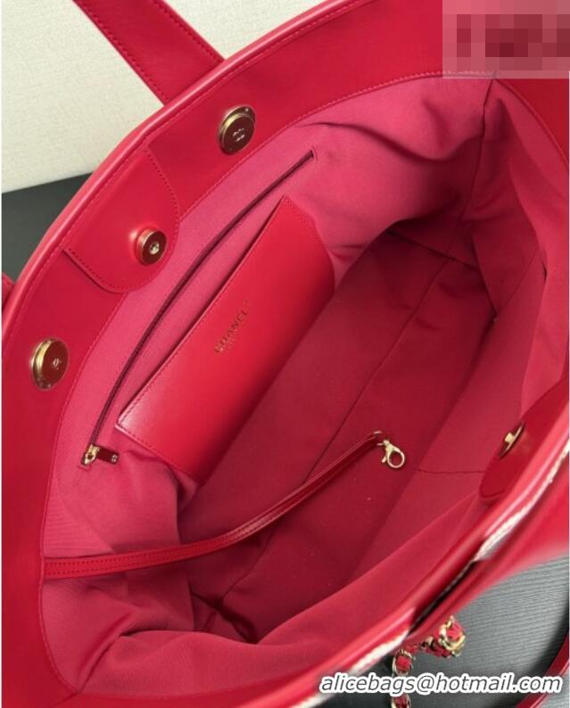 Traditional Discount Chanel Striped Printed Fabric Shopping Bag AS6007 Red 2026