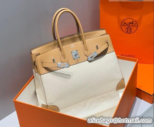 > Hermes Handbag > Hermes Birkin 35CM > Good Looking Hermes Birkin 35cm Bag in Canvas and Swift Calfskin Leather H0035 Milk Tea 2026