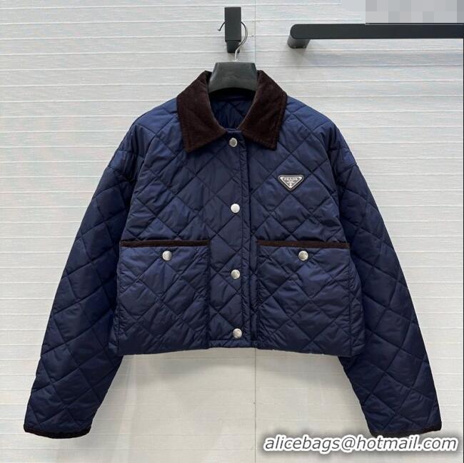 Traditional Discount Prada Cotton Padded Jacket PR111527 Navy Blue 2025