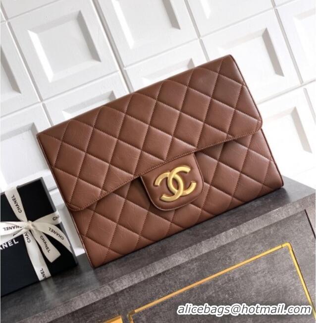 Buy New Cheap Chanel Calfskin Leather Large Clutch AP4944 Brown 2025
