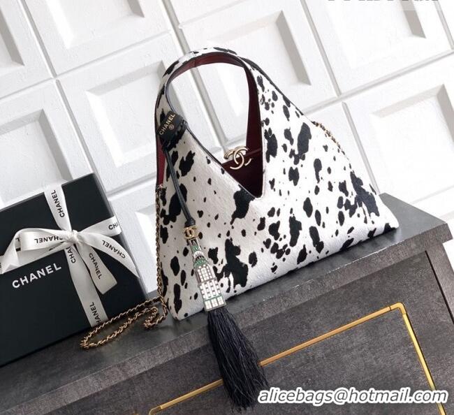 Traditional Specials Chanel Printed Hair-Like Hobo Bag with Tassel Charm CH020406 White/Black 2026