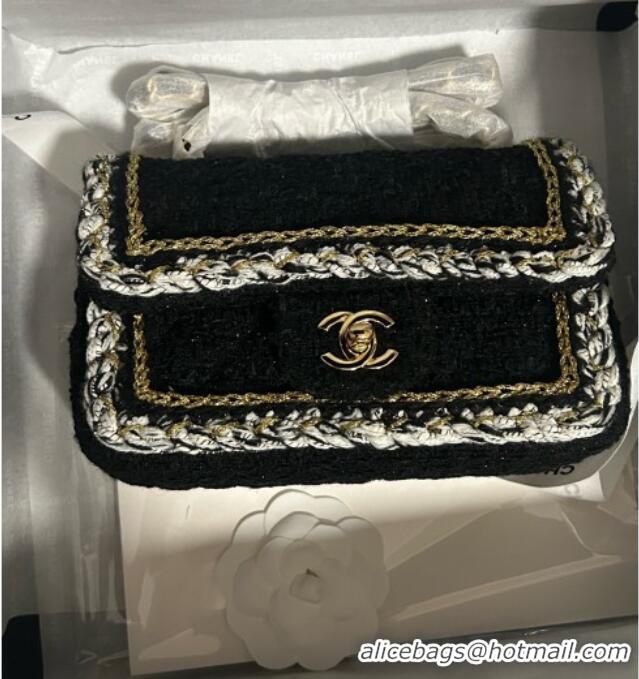 Well Crafted Chanel Tweed Small Flap Bag A01113 Black 2025