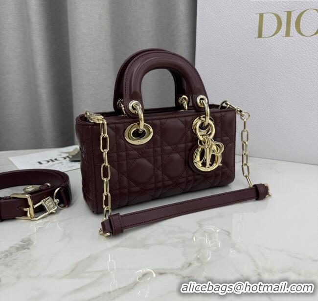 Traditional Specials Dior Mini Lady D-Joy Bag in Cannage Lambskin M0636 Burgundy 2025