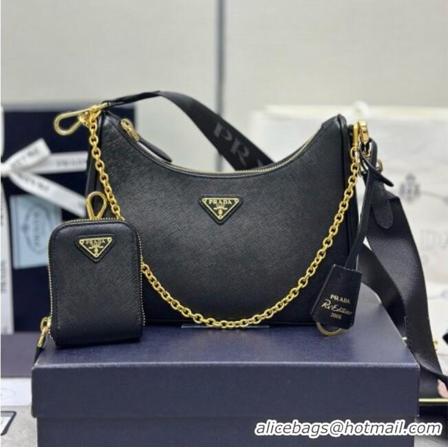 Best Quality Prada Re-Edition 2005 Saffiano leather bag 1BH204 Black/Gold 2026
