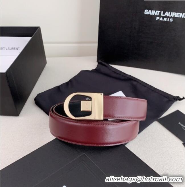 Traditional Specials Saint Laurent Reversible Leather Belt 3cm 0617 Dark Burgundy/Gold 2025