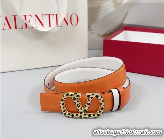 Well Crafted Valentino VLogo Calfskin Leather Belt 3cm with Stone Buckle 0108 Orange/White 2025