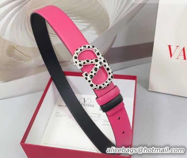 Traditional Specials Valentino VLogo Calfskin Leather Belt 3cm with Stone Buckle 0108 Dark Pink 2025