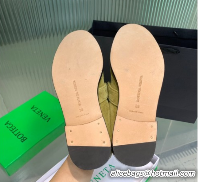 Hot Style Bottega Veneta Astaire Loafers in Suede with Knot Green/Gold 0823037