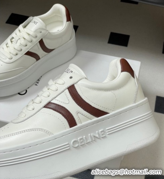 > Shoes Plaza > Celine Shoes > Trendy Design Celine Block Platform Sneakers 5cm with Back Triomphe and Wedge Outsole in Calfskin Leather White/Brown 12