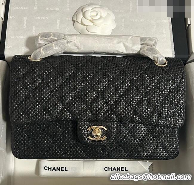 Top Quality Chanel Classic Medium Flap Handbag in Woven Fiber A01112 Black 2026