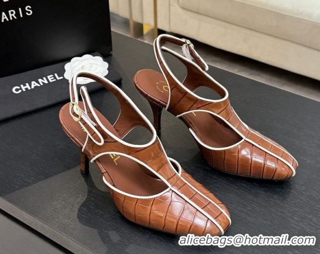 Low Price Chanel Crocodile Embossed Patent Calfskin Leather Slingbacks Pump G47184 Brown 2026