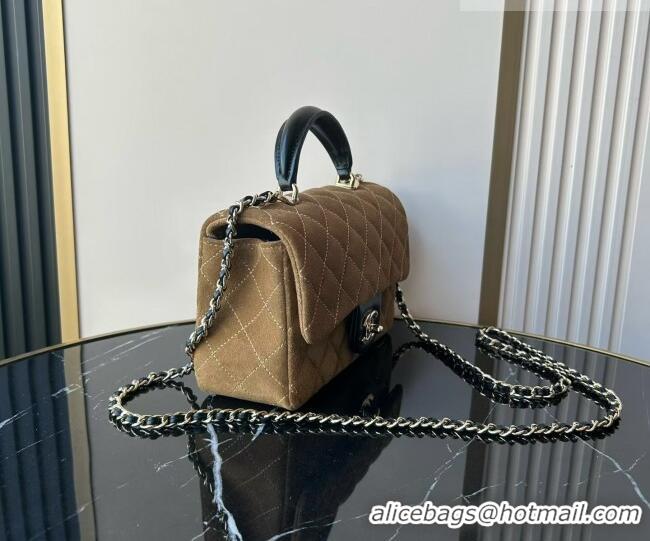 Trendy Design Chanel Suede & Calfskin Leather Mini Classic Flap Handbag With Top Handle AS2431 Brown 2026